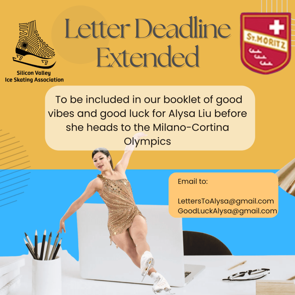 SVISA and the St. Moritz Ice Skating Club have teamed up to collect good luck and good vibes letters for World Champion and Olympian Alysa Liu, and we’re excited to share that the submission deadline has now been extended to Friday, January 23!